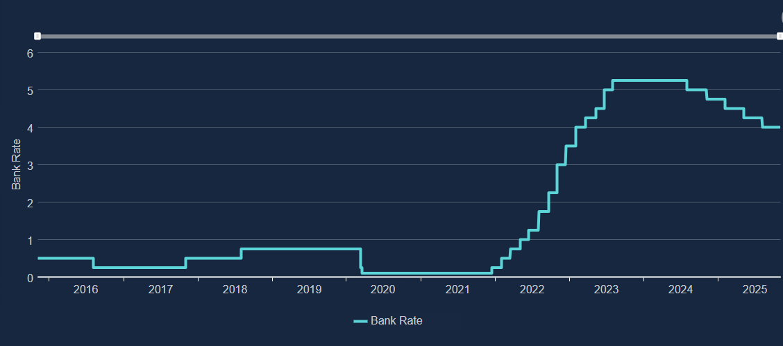 In February, the Bank of England voted to reduce the base rate to 4.5%, a reduction of 0.25%. In March, it's voted to keep it the same, and in May the rate dropped again to 4.25%. Now, the rate has been held once again at 4.0% following August's reduction, continuing the Bank of England's trend for the year so far.